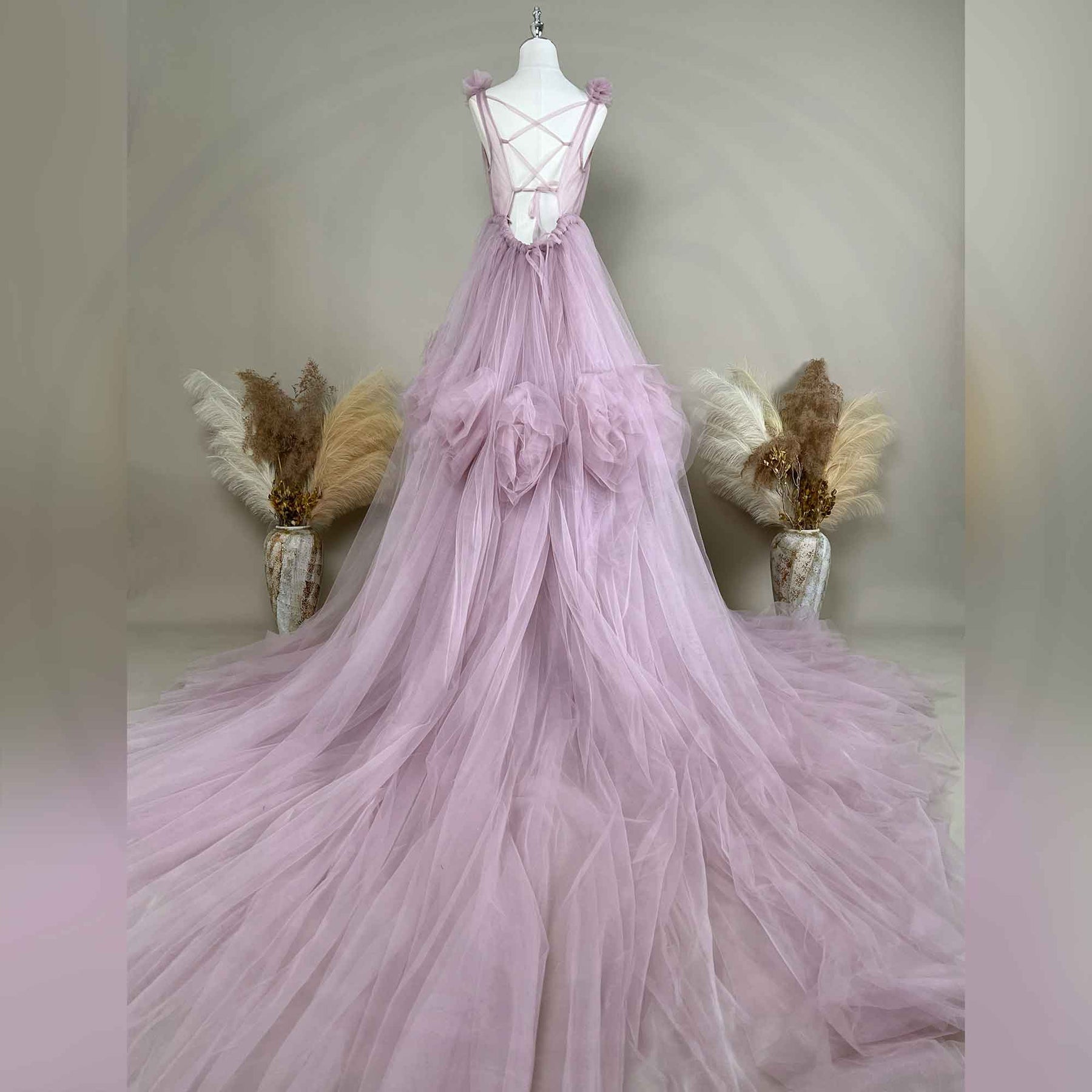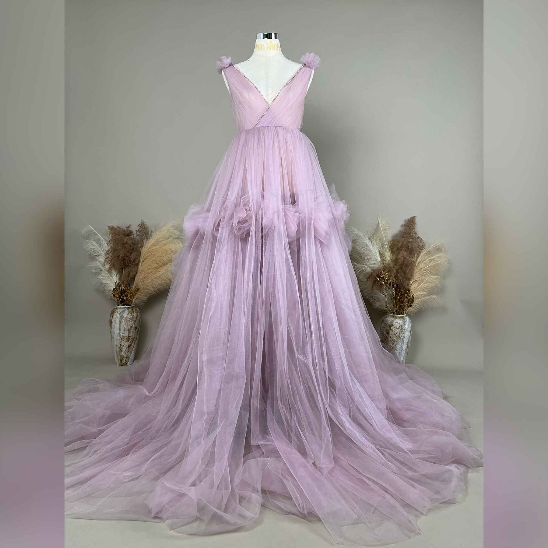 Product name:Light Purple Tulle V-Neck Sleeveless Gown with Rose Accents and Train Dress Maternity or Non-maternity Gown Pregnant Dress Photoshoot Baby Shower Gift