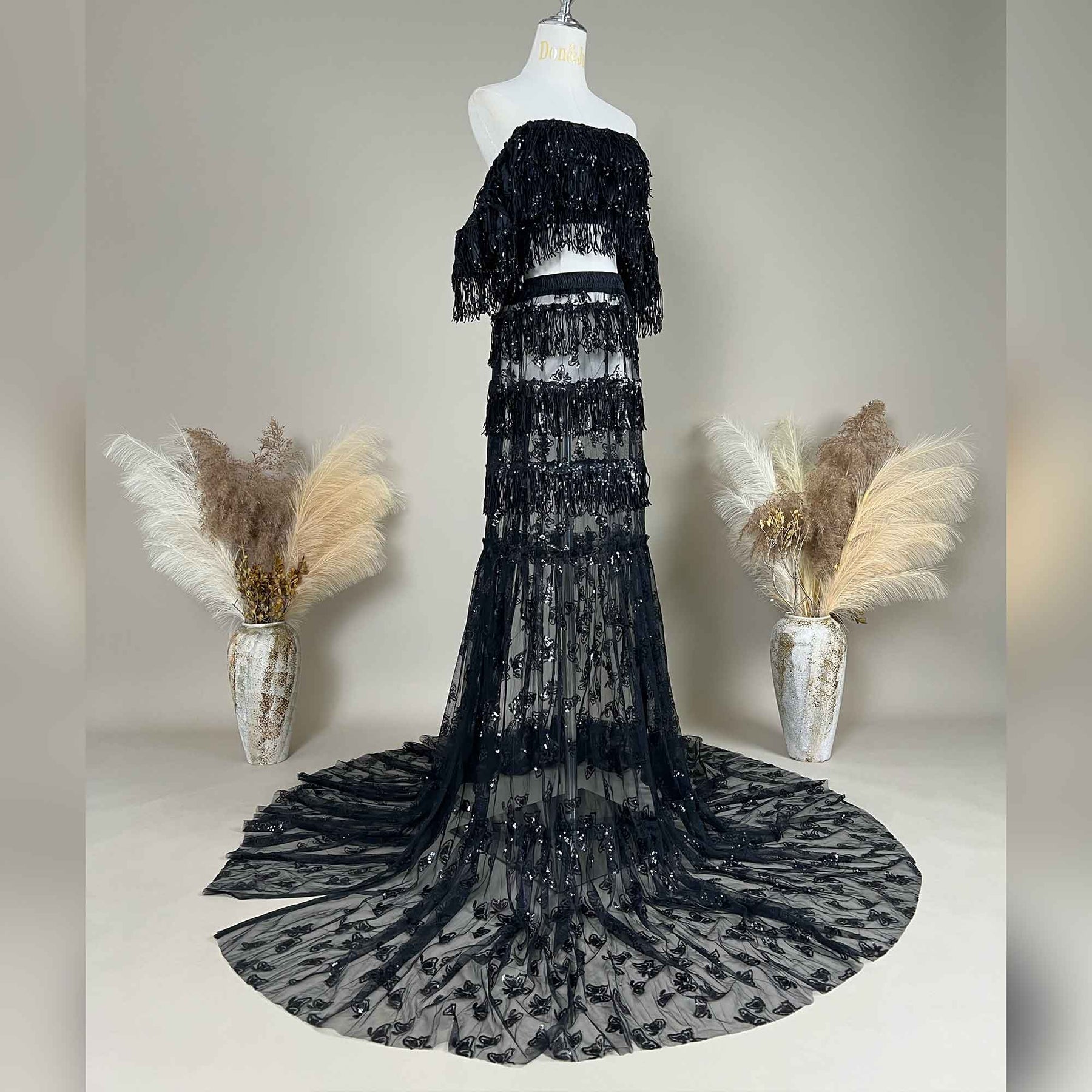 Product name: Black 2-piece Top and Skirt Set Maternity or Non-maternity Gown Party Dresses for Photography Props Baby Shower Photo Props
