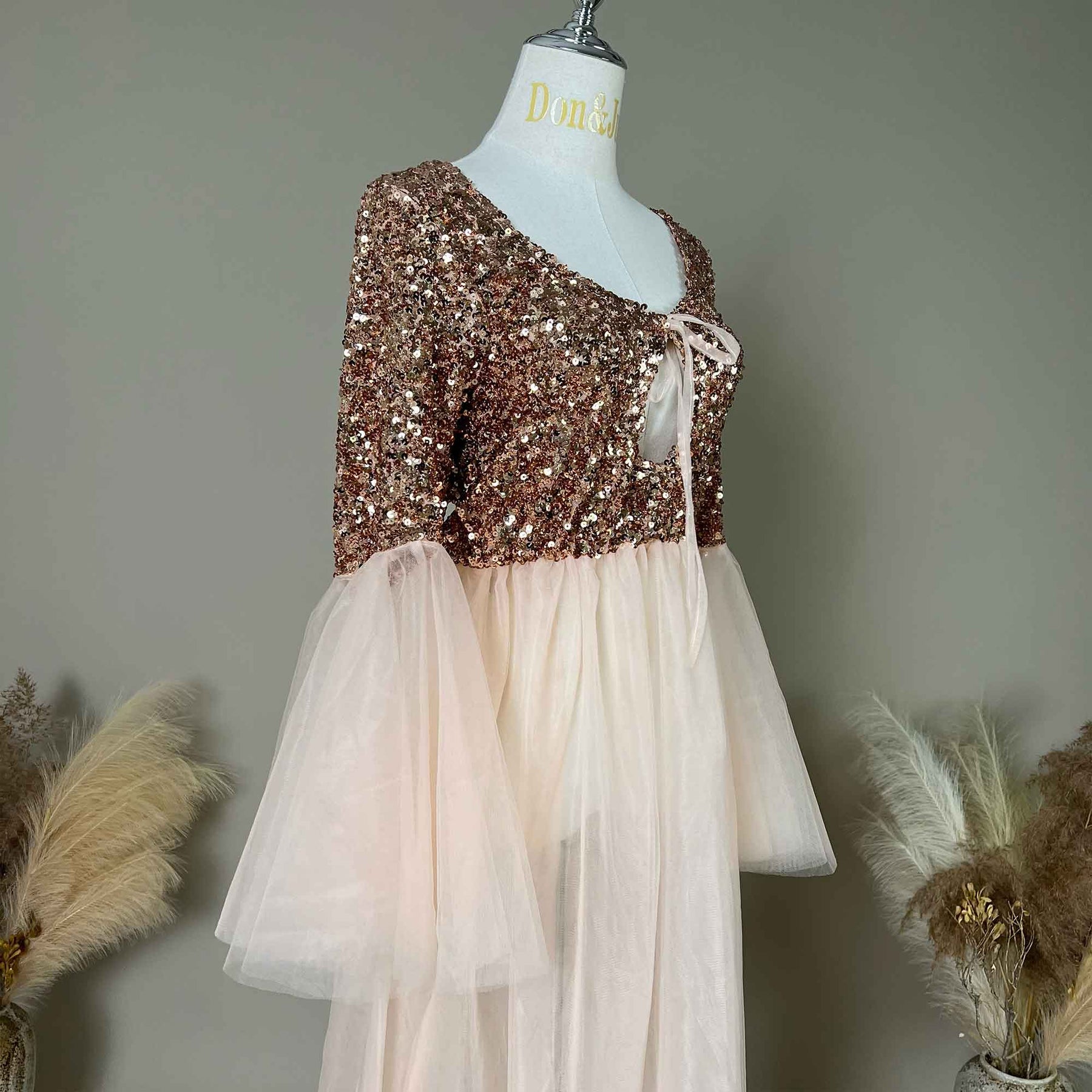 Product name:  Elegant Sequin Tulle Gown – Maternity or Non-maternity Dresses for Photography Props Baby Shower Photo Props