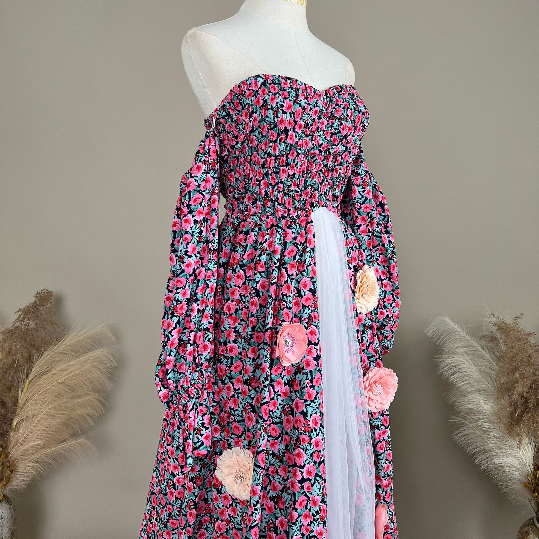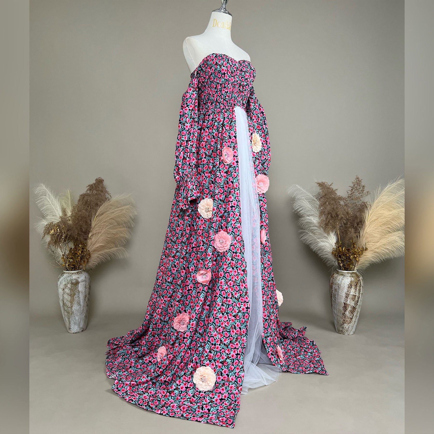 Product name:  Floral Strapless Gown – Maternity or Non-maternity Dresses for Photography Props & Baby Shower Photoshoot