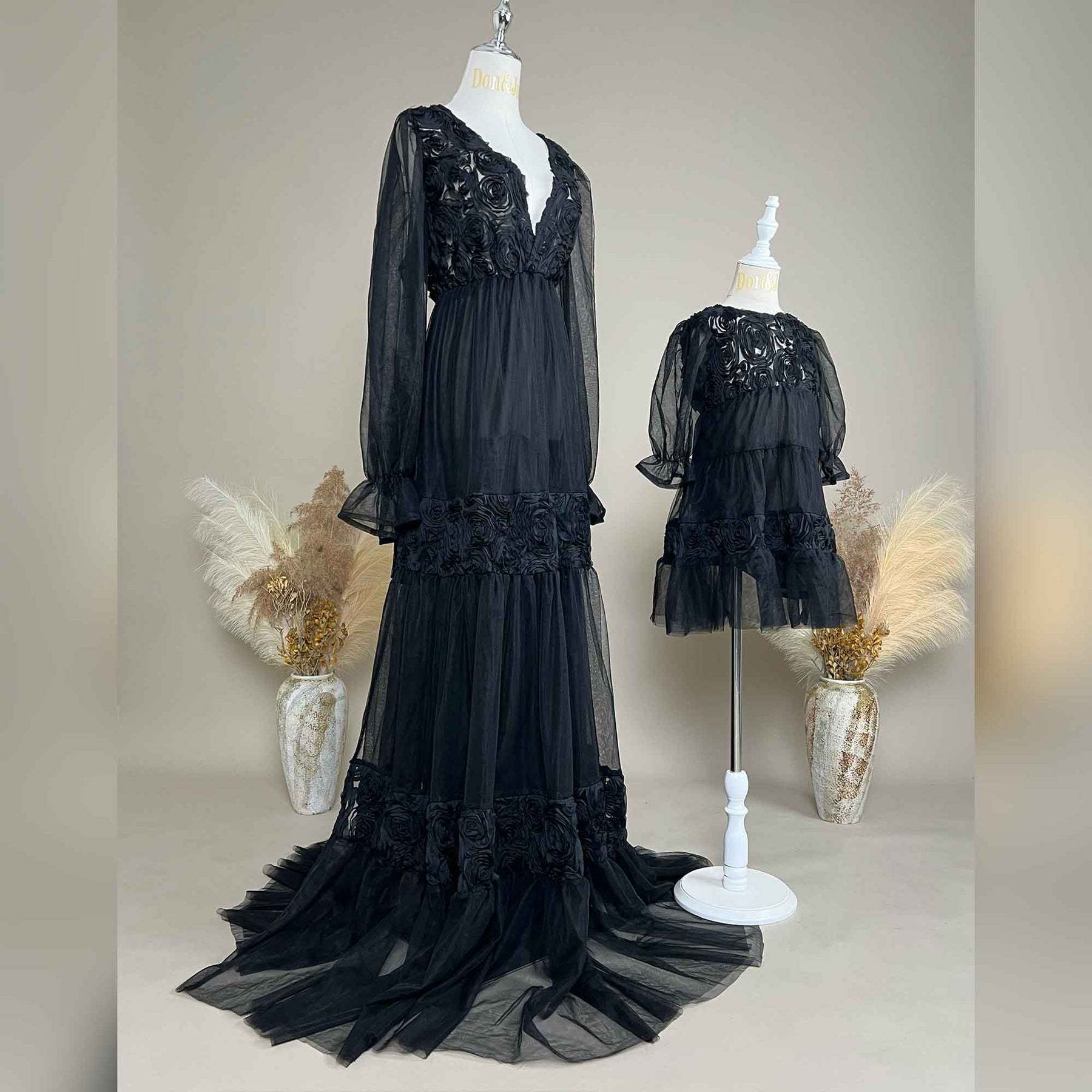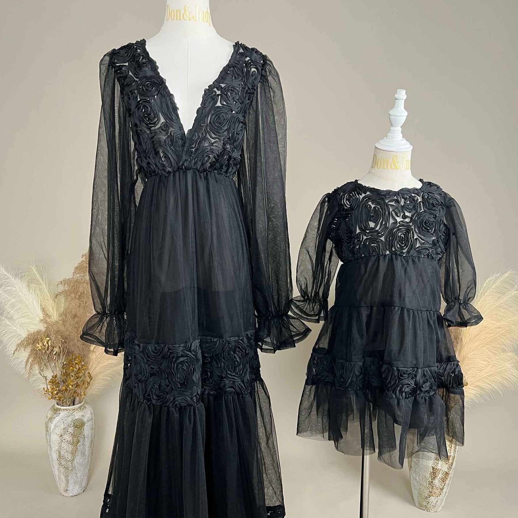Product name:  Black Tulle Long Gown Mommy & Me Set  – Gentle & Elegant Set for Daily Wear, Photography Props & Special Occasions