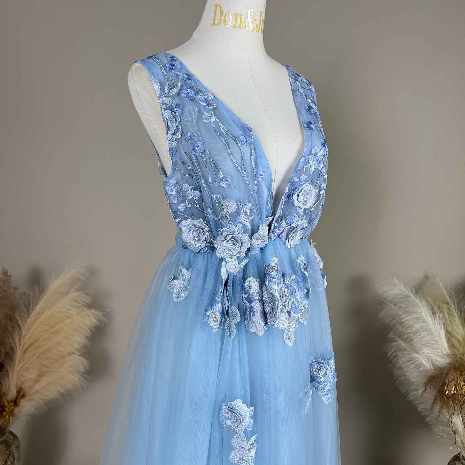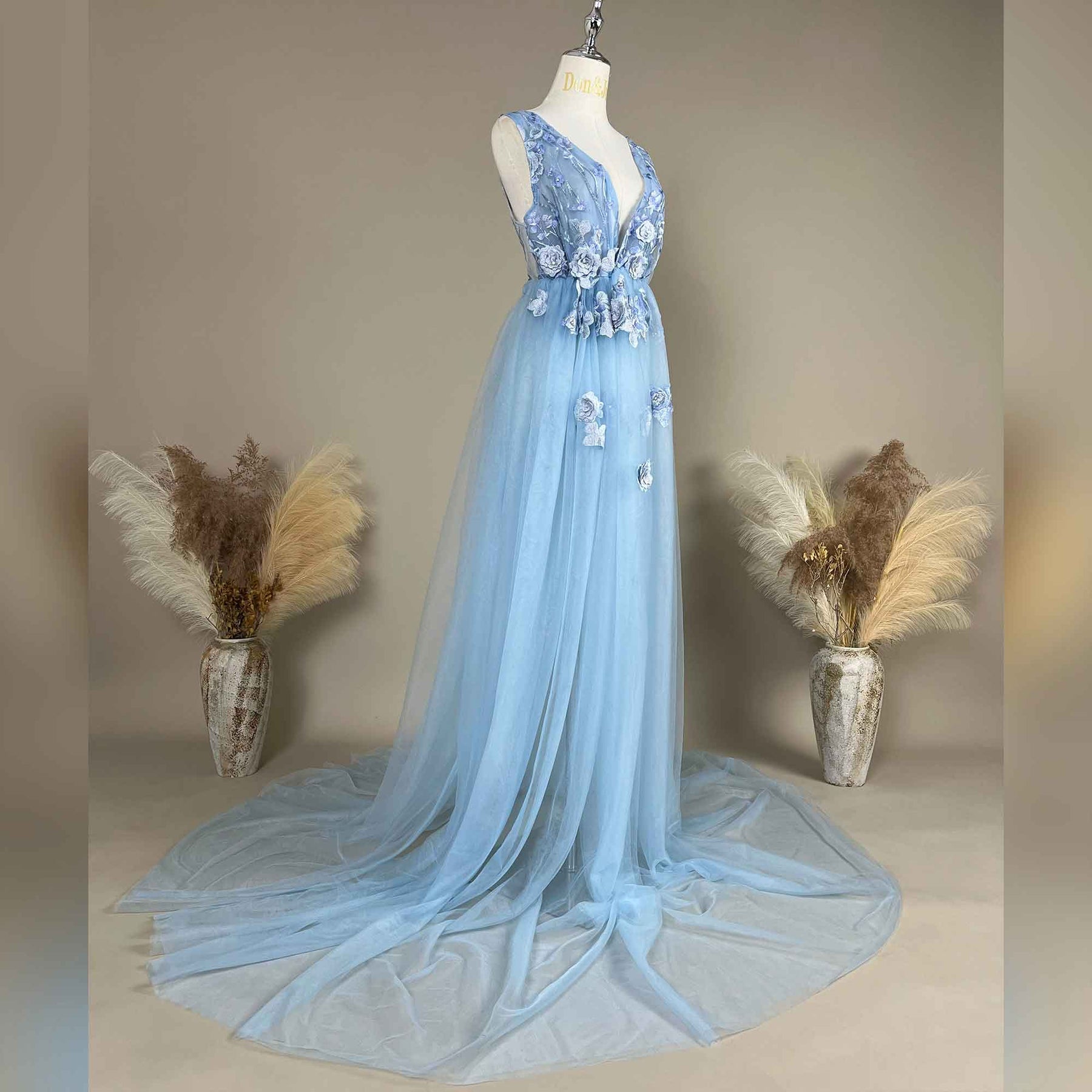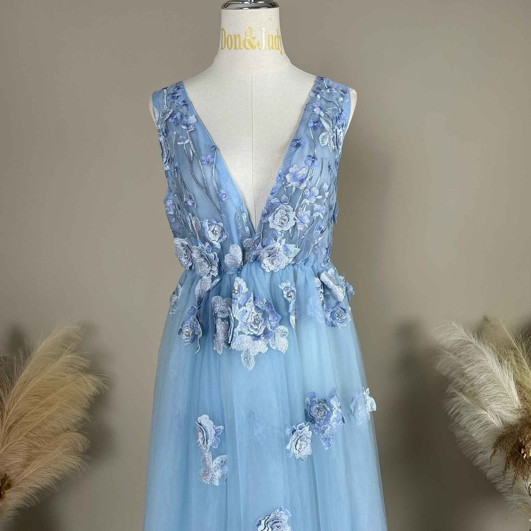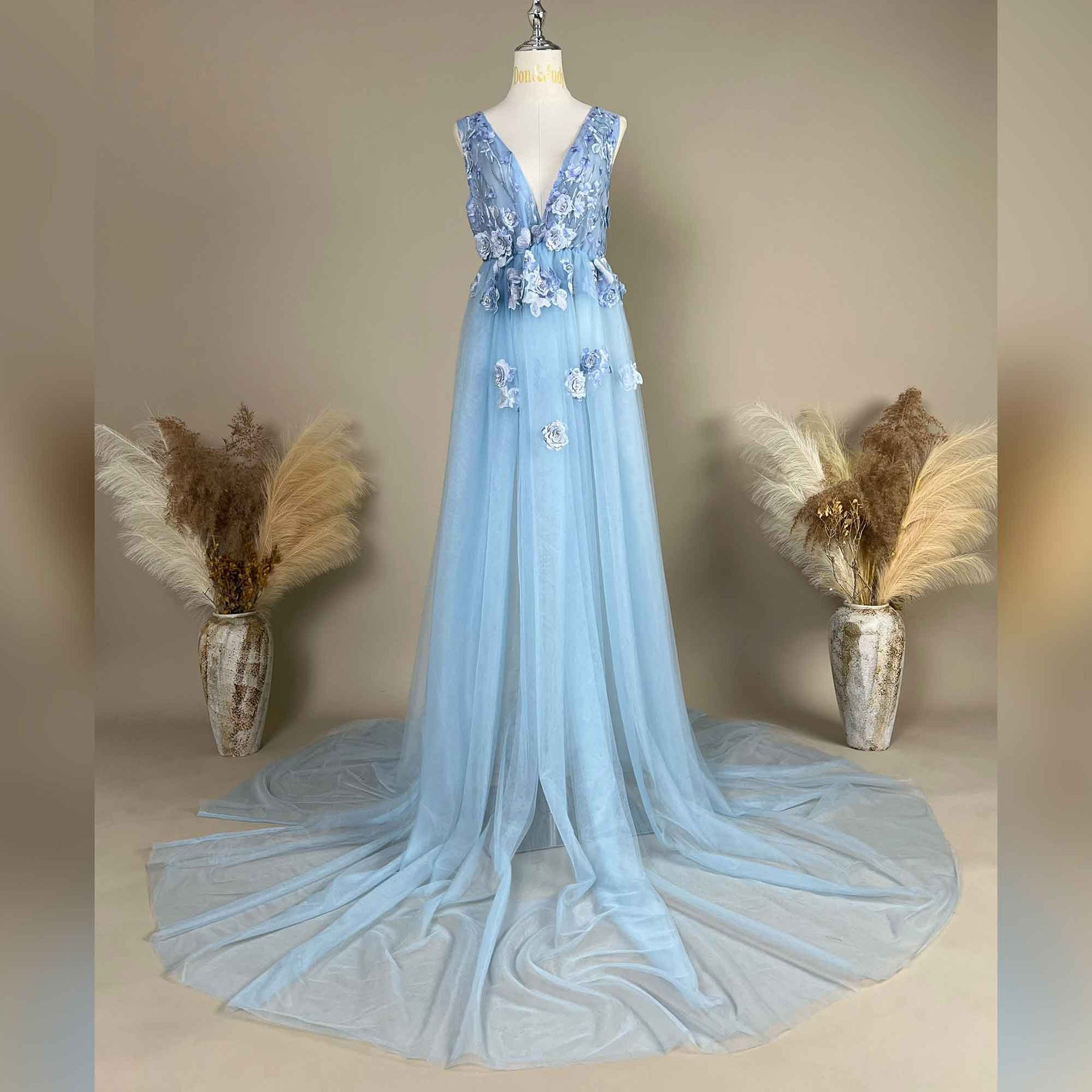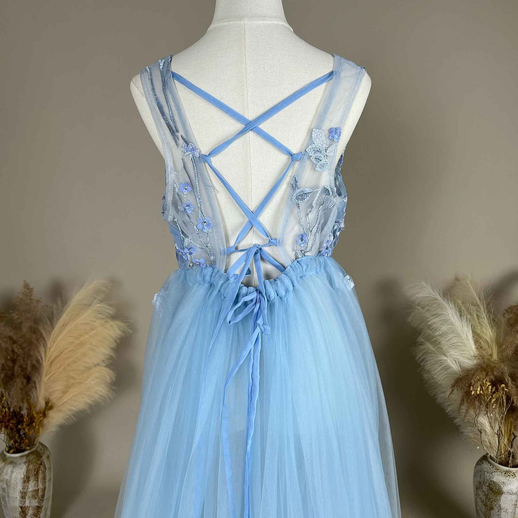 Product name: Blue v-neck Tulle Embroidered Maternity or Non-maternity Gown Party Dresses for Photography Props Baby Shower Photo Props