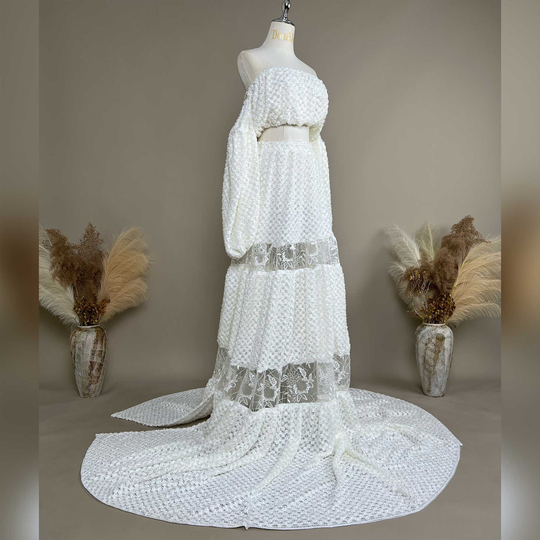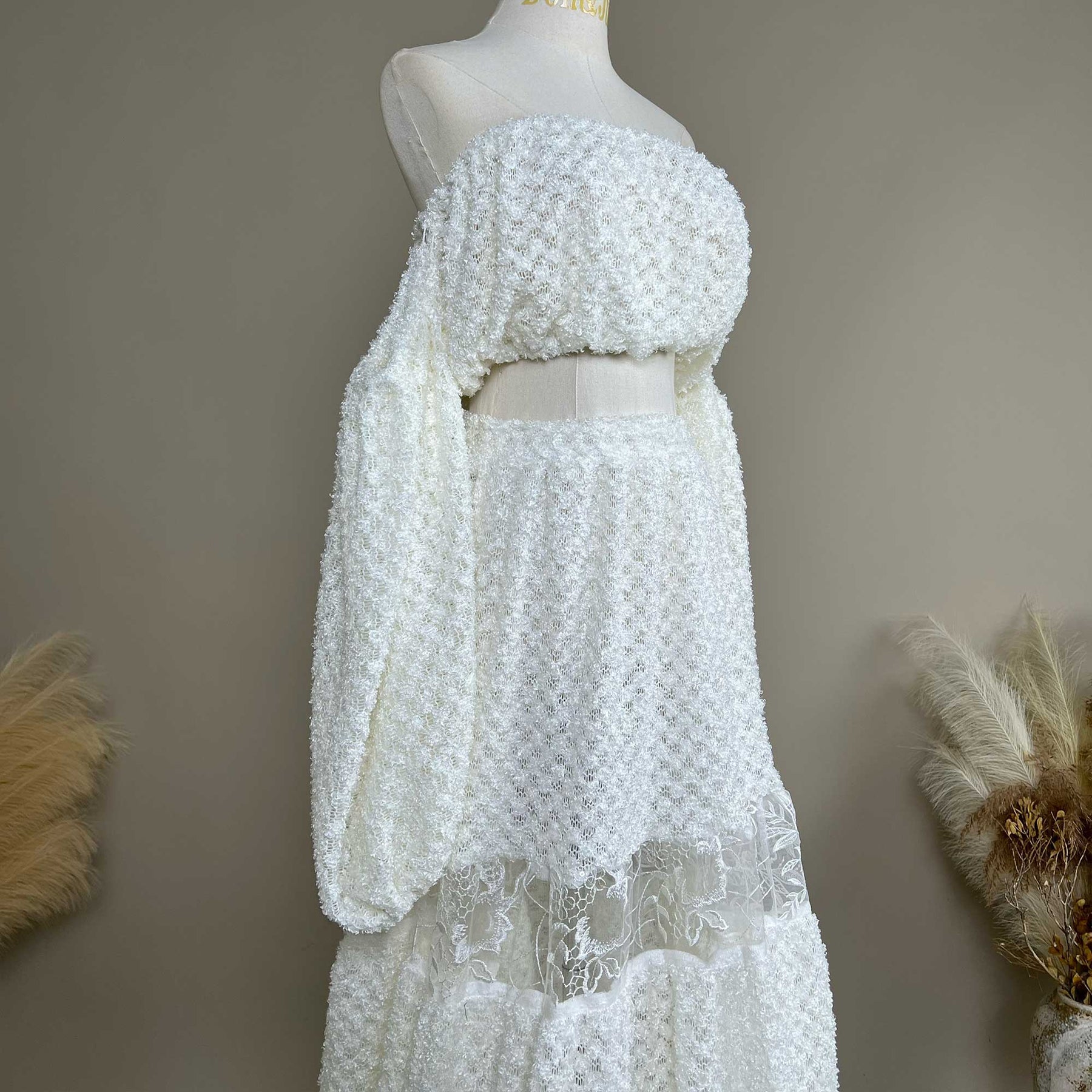 Product name: Stylish White Two-Piece Strapless Gown – Maternity or Non-maternity Dresses for Photography Props & Baby Shower Photos