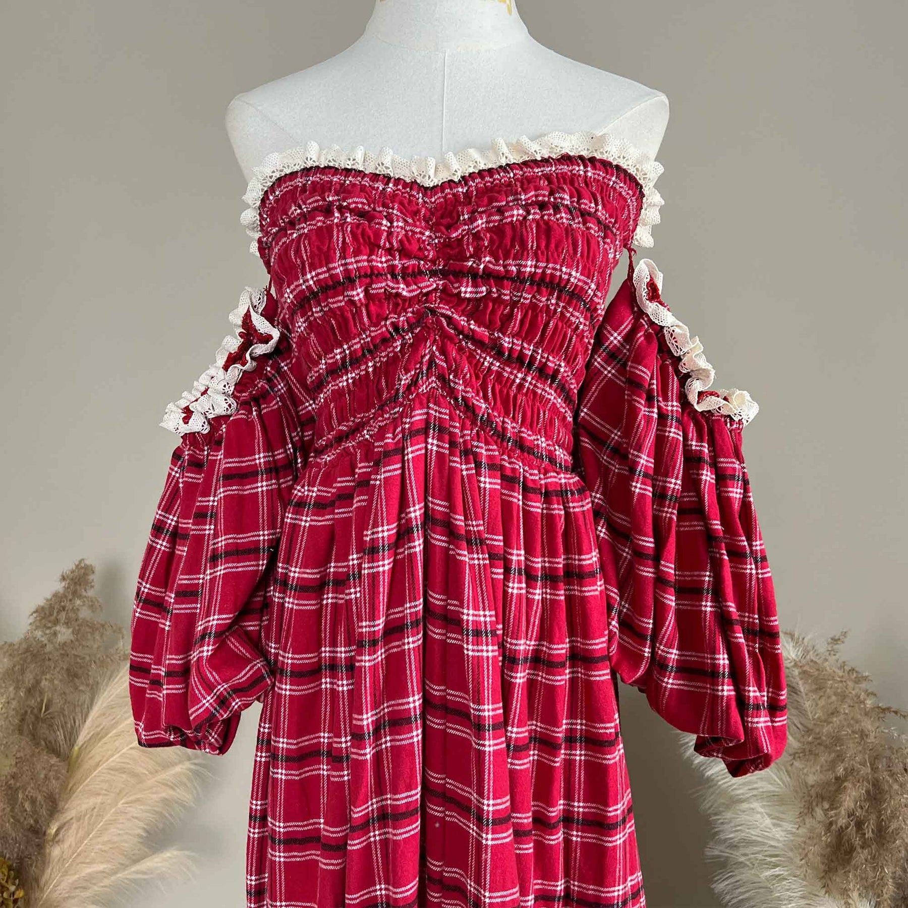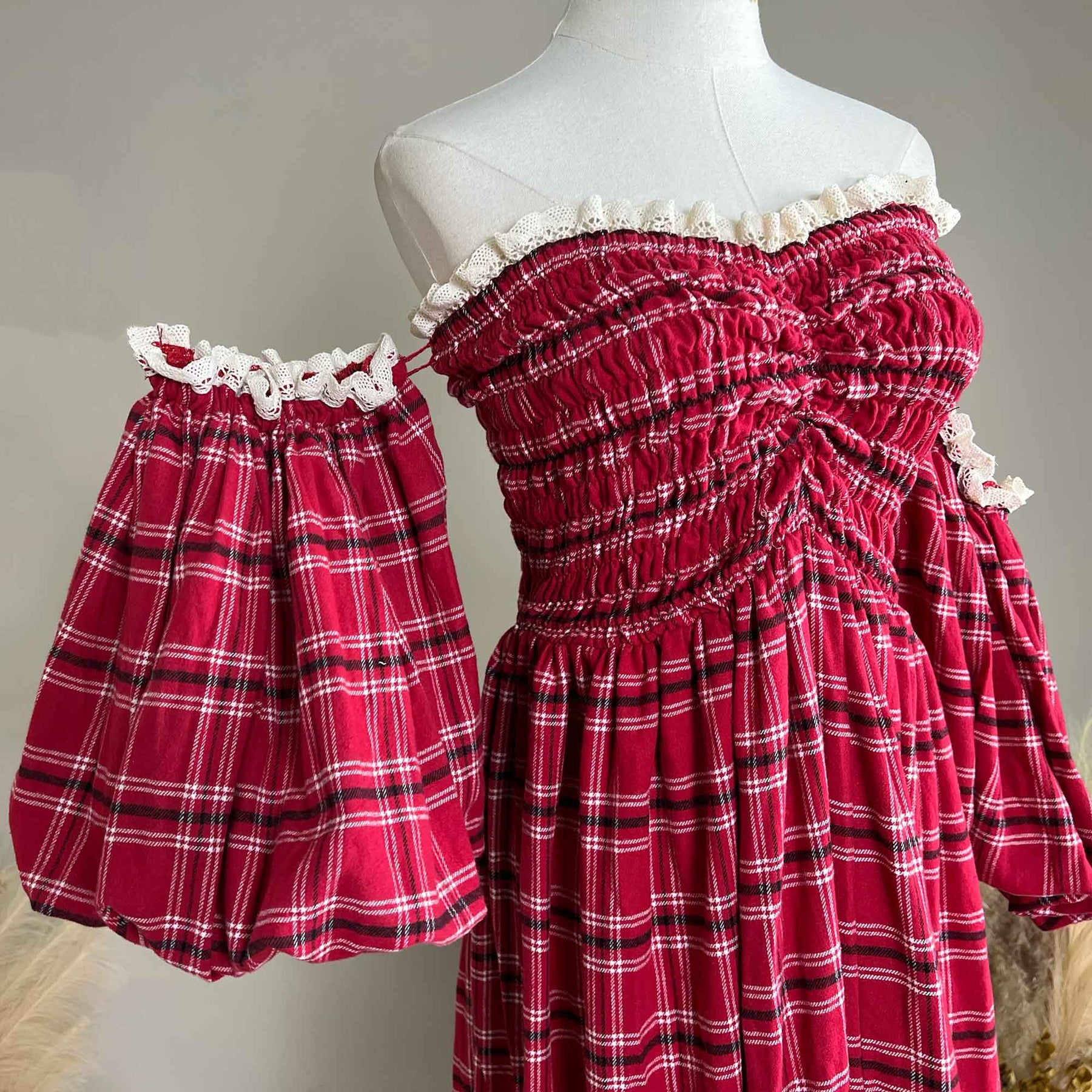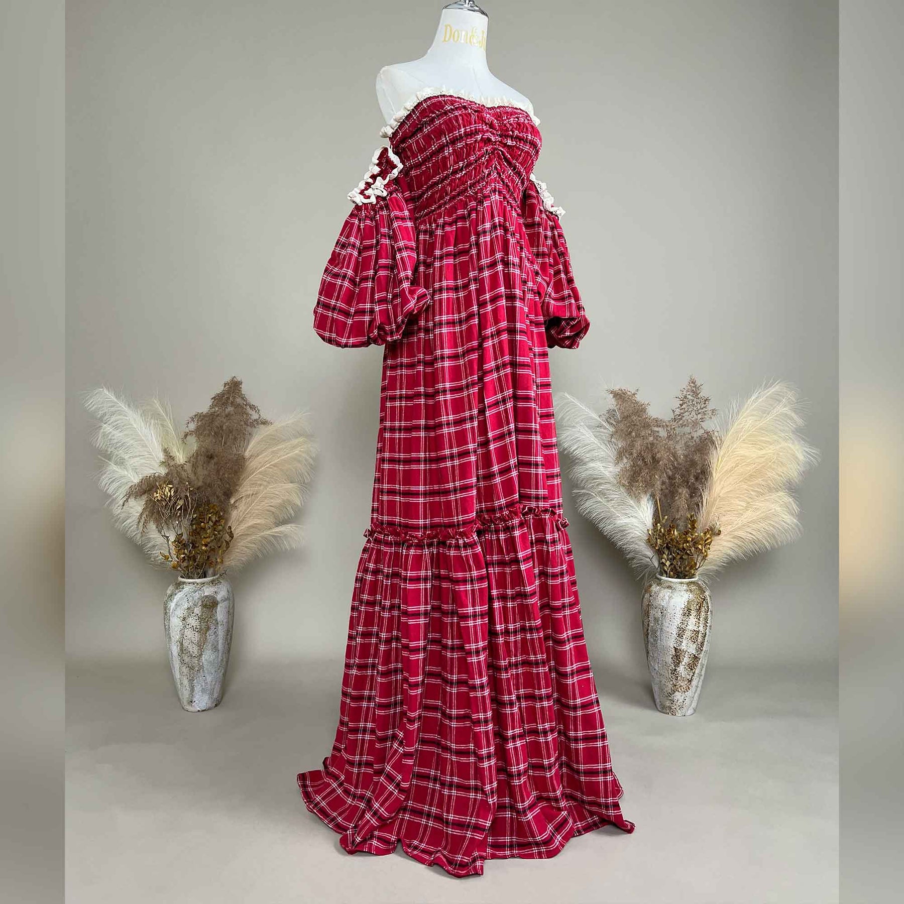Product name: Red Plaid Elegant Long Gown – Maternity or Non-maternity Dresses for Photography Props Baby Shower Photo Props