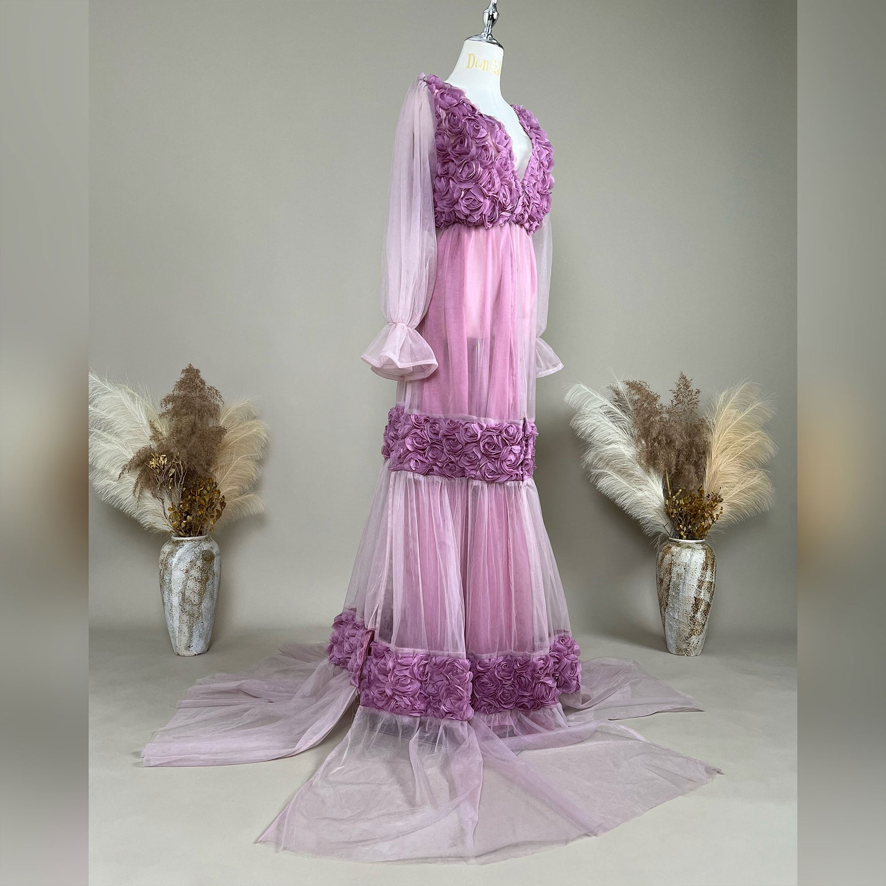 Product name: Purple Floral Tulle Dress – Matching Gowns for Maternity or Non-maternity Photography Props & Baby Shower Photos