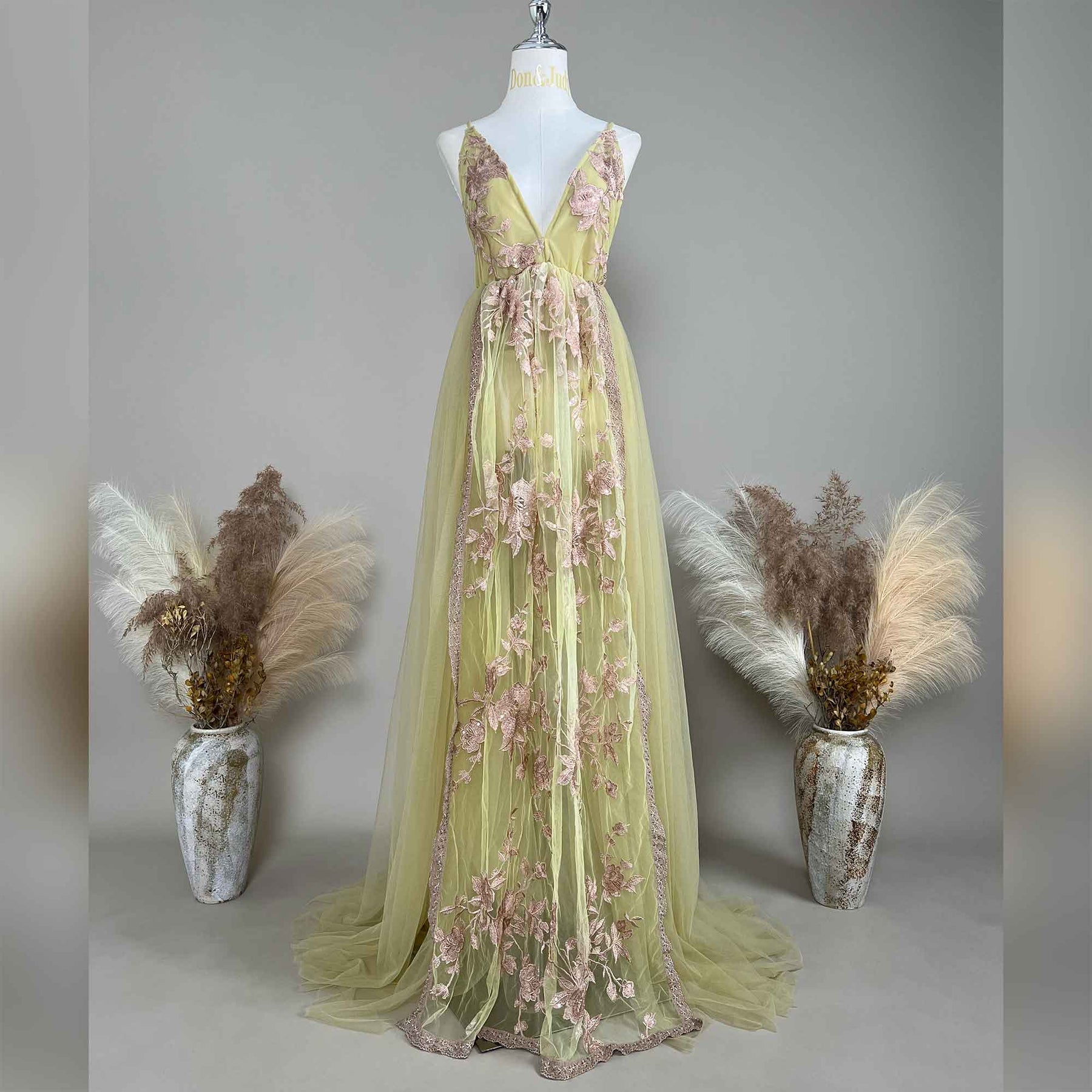 Product name: Elegant Tulle V-neck Maxi Dress – Graceful Maternity or Non-maternity Gown for Baby Shower Photos & Photography Props