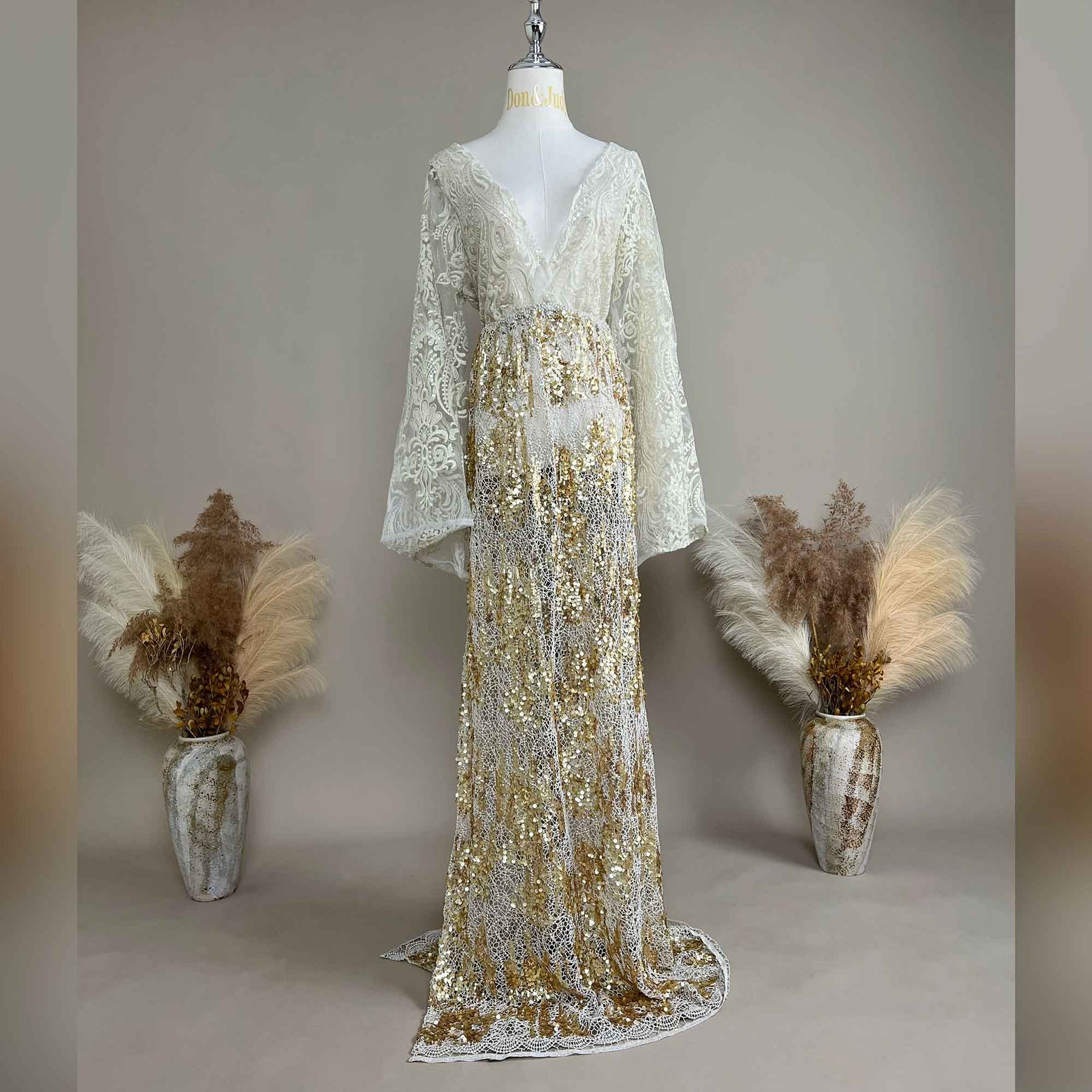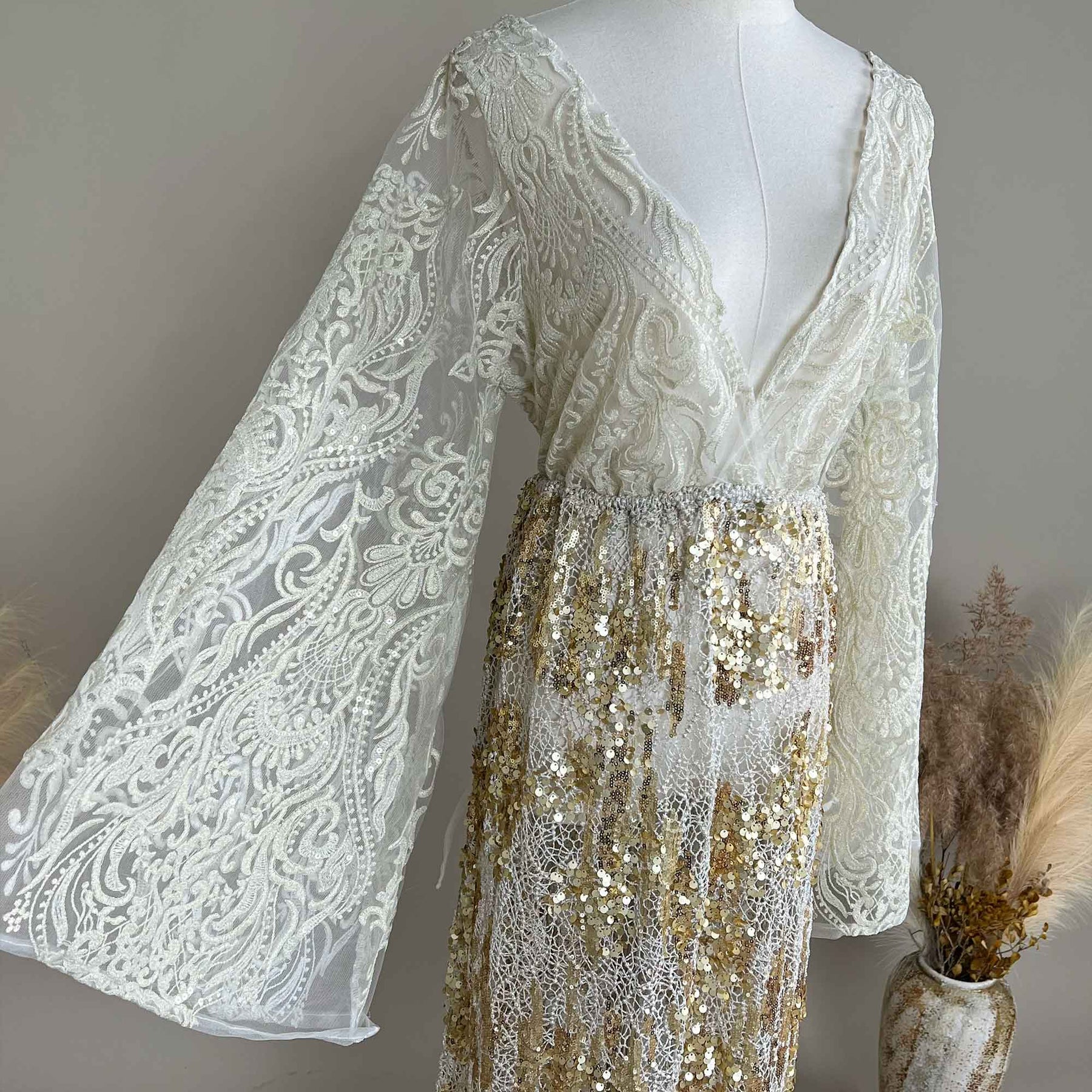 Product name: Lace Sequin V-neck Gown – Maternity or Non-maternity Dresses for Photography Props & Baby Shower Photoshoot