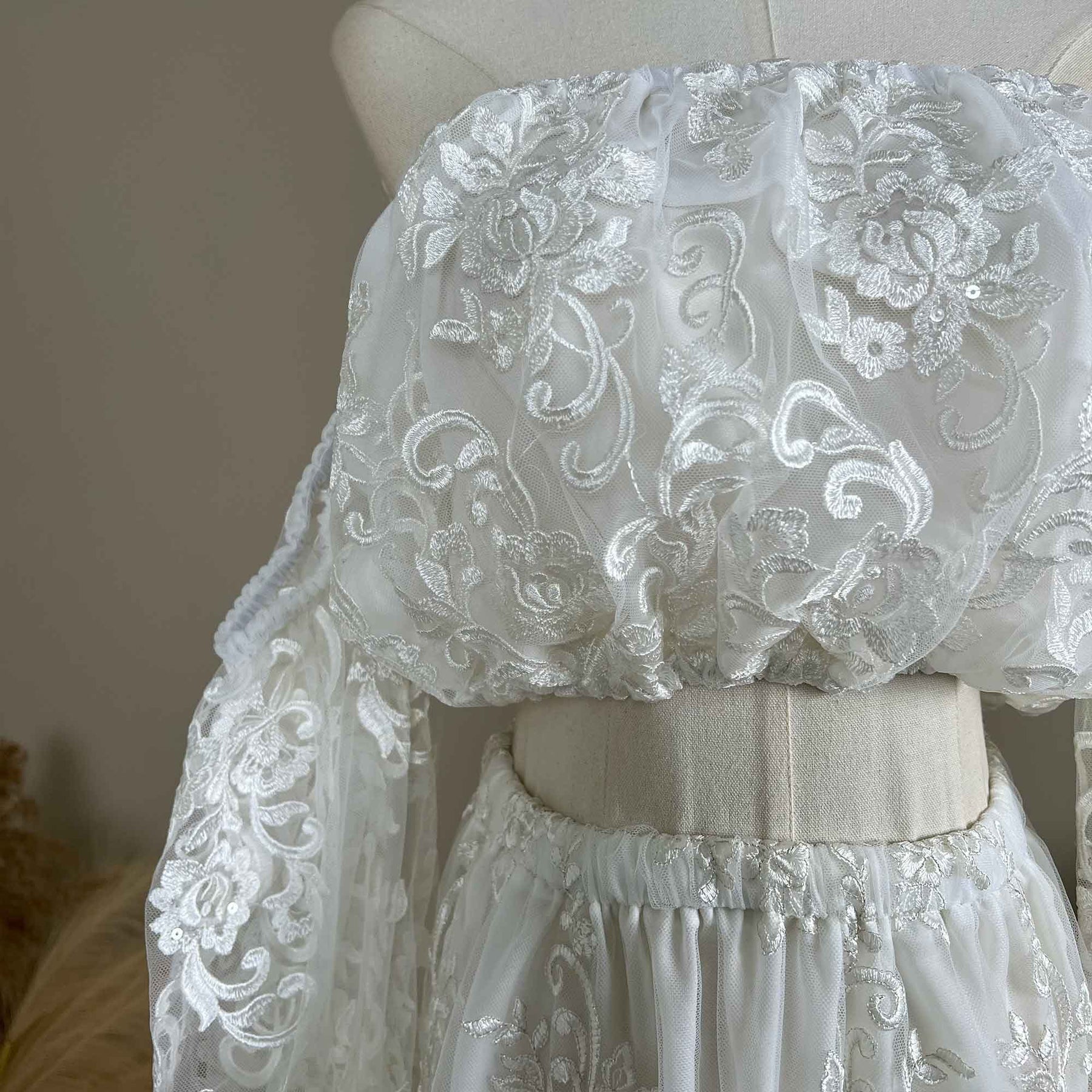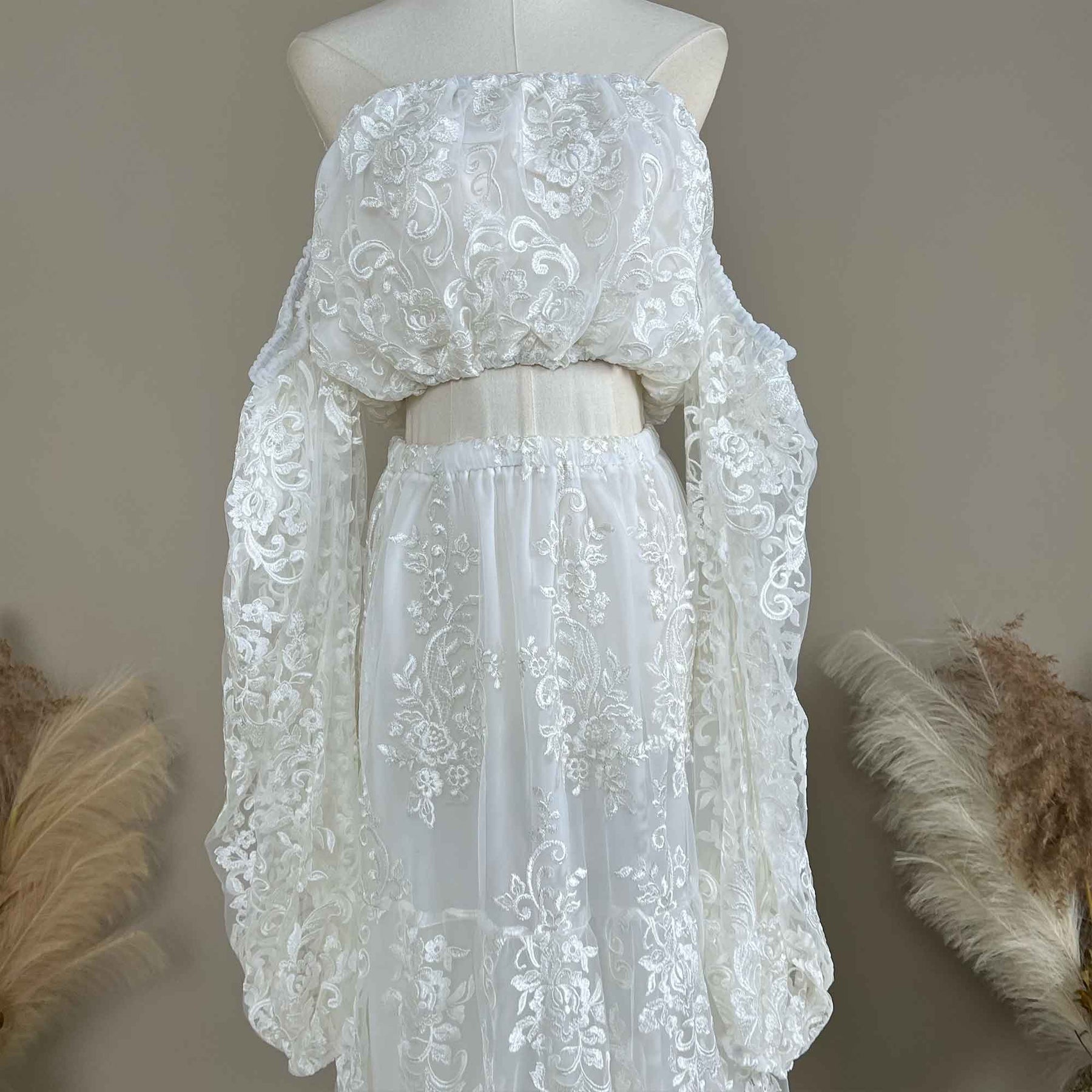 Product name: White Lace Two-piece Dress Set – Maternity or Non-maternity Gown Dresses for Photography Props & Baby Shower Photoshoot