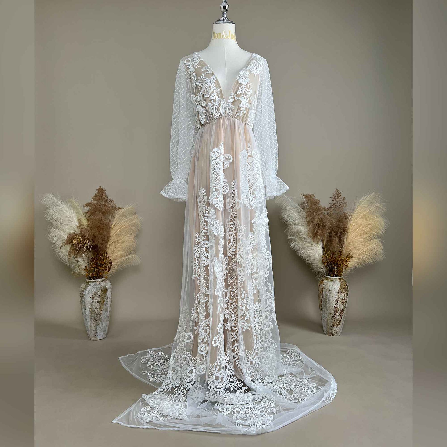 Product name: Classic Lace V-Neck Dress – Beautiful Maternity or Non-maternity Gown for Baby Shower & Photoshoot