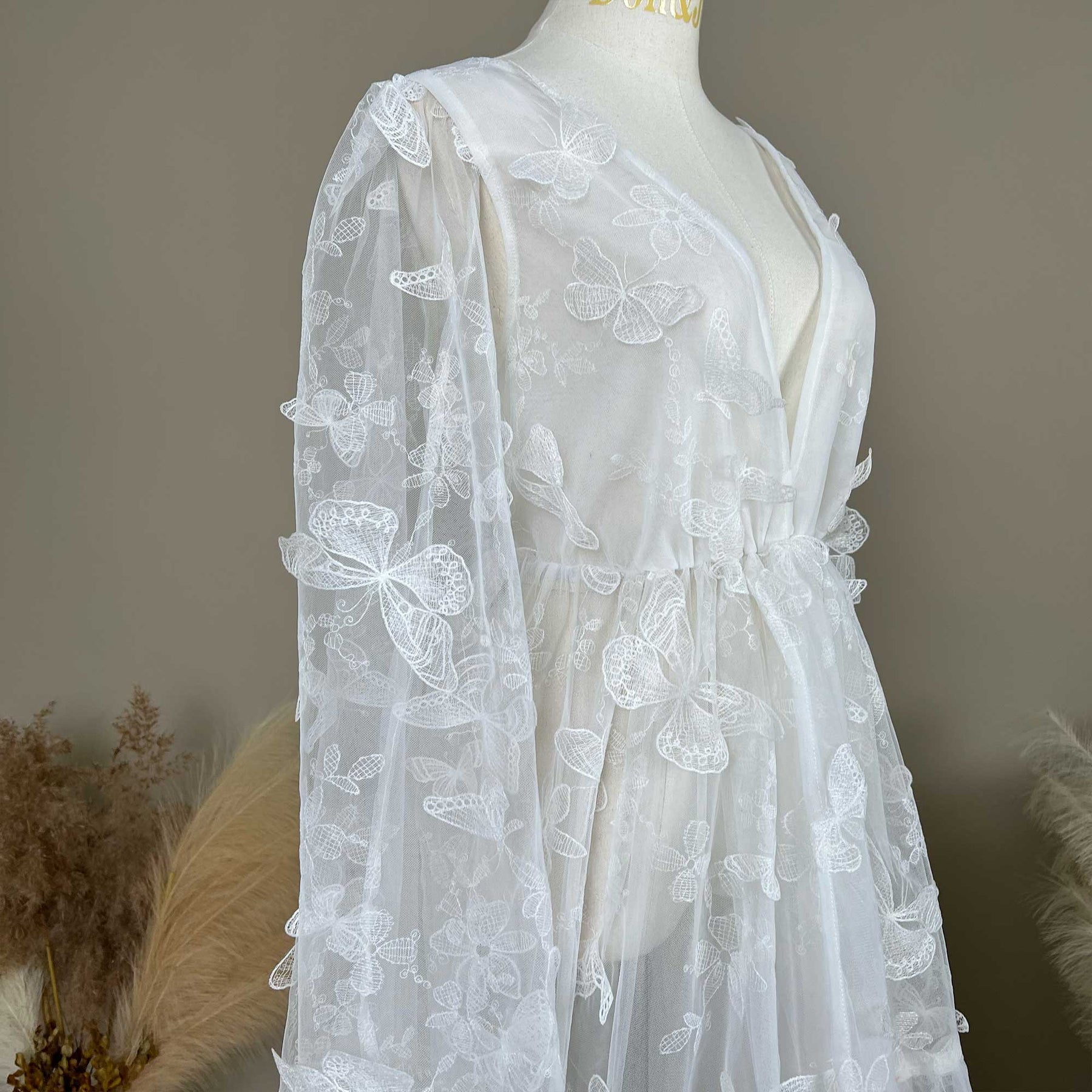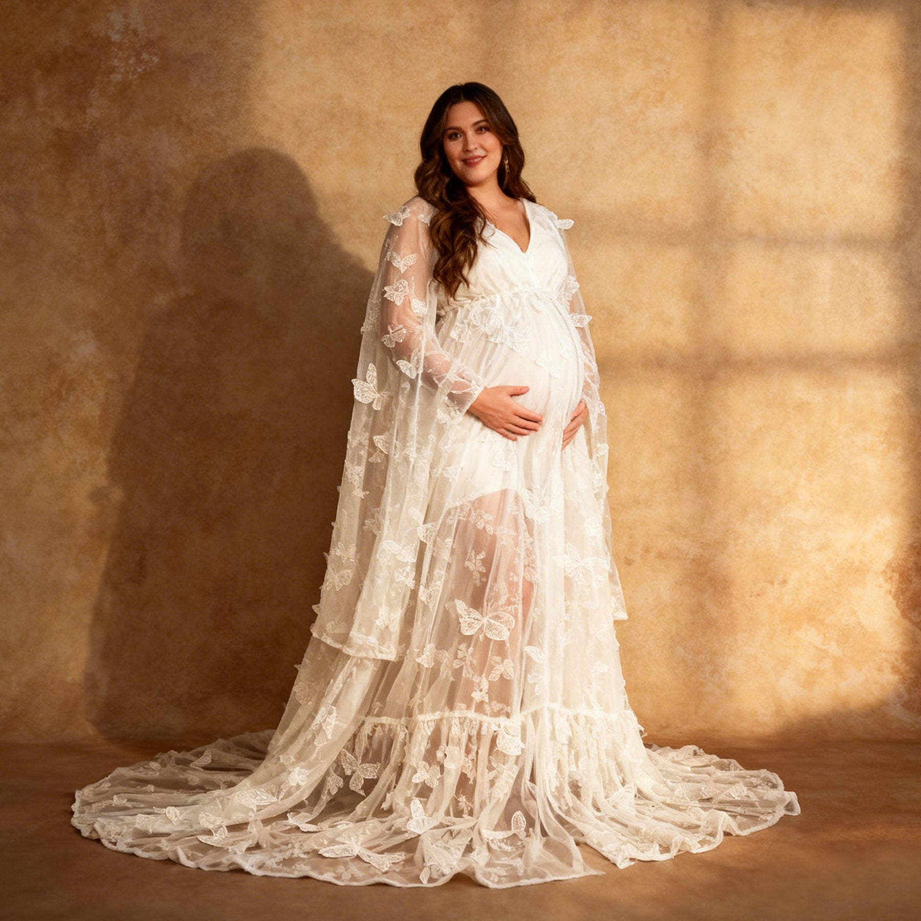 Product name: White Butterfly Extra Long Sleeves Tulle Maternity or Non-maternity Gown for Photoshoot Baby Shower