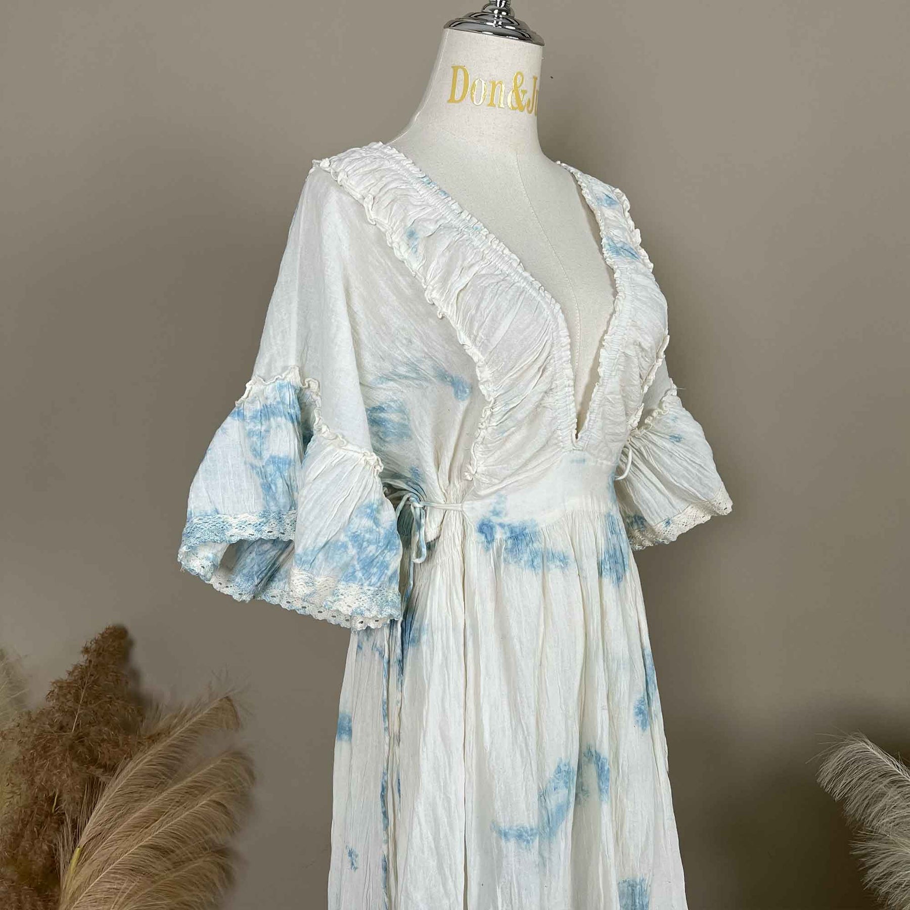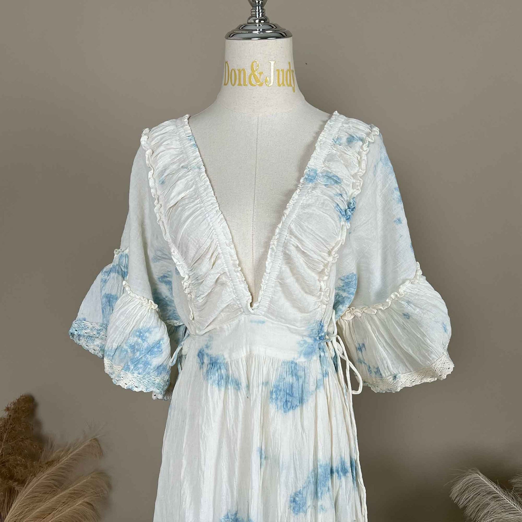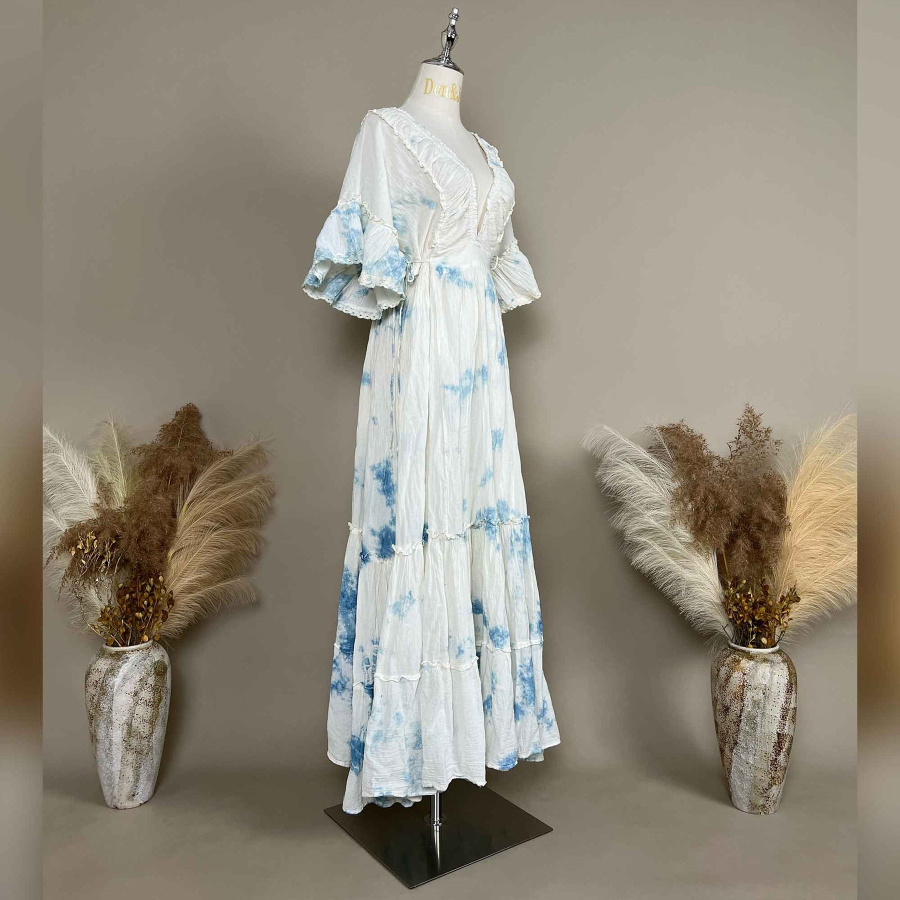 Product name: Tie-Dye Crinkle Cotton V-Neck Short-Sleeve Maxi Dress Maternity Gown Pregnant Dress Photoshoot Baby Shower