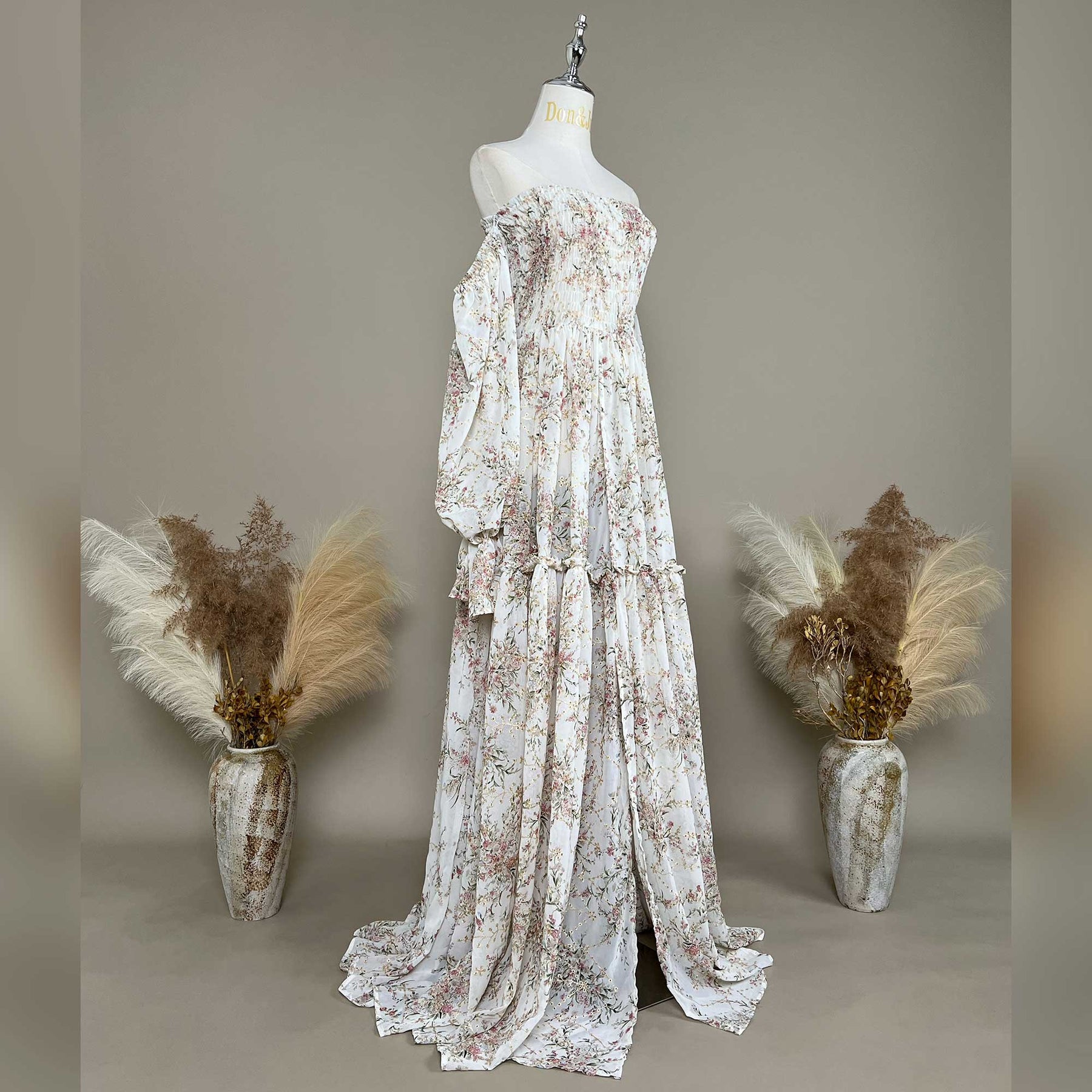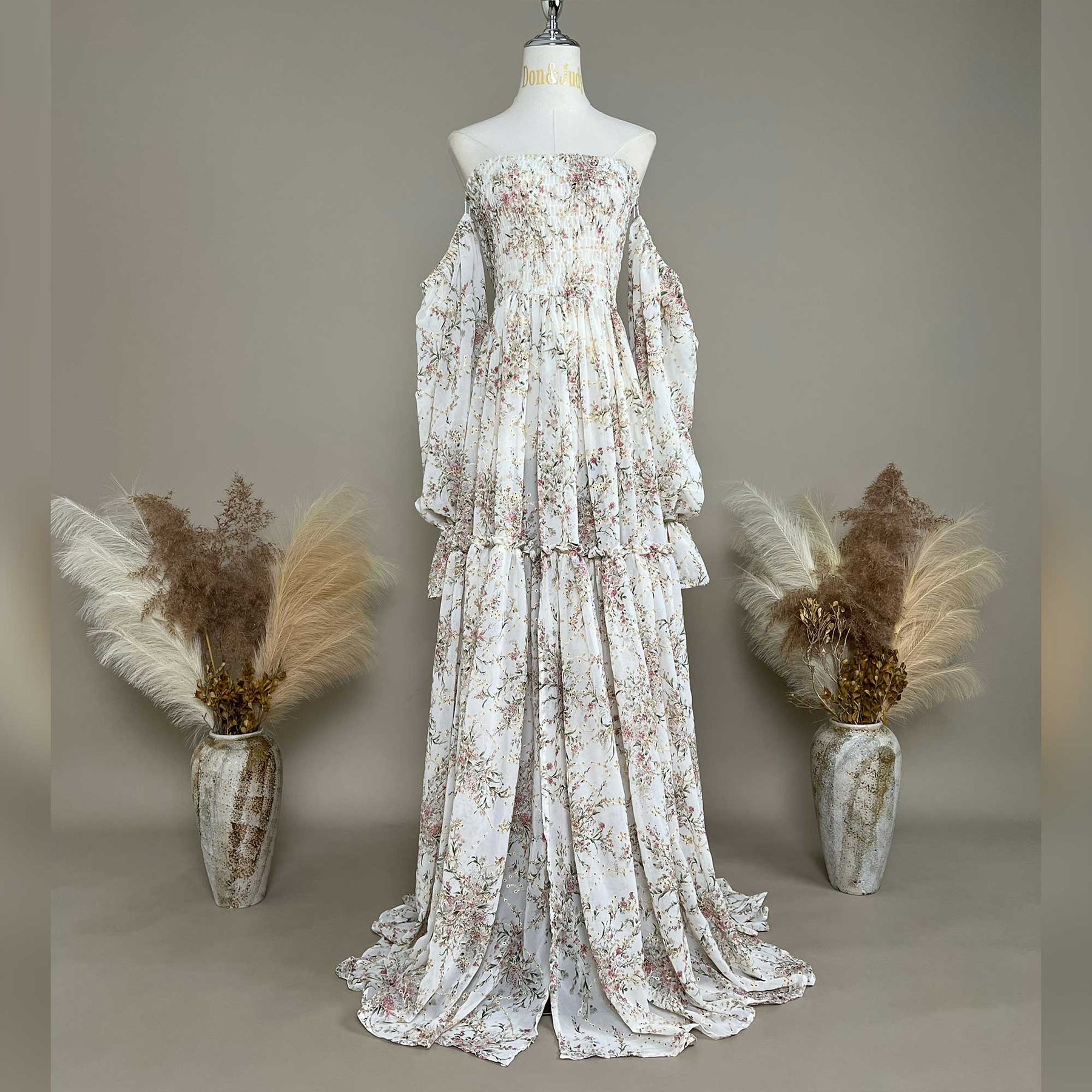 Product name: Floral Chiffon Strapless Long-sleeved Front Slit Maternity or Non-maternity Dresses for Photography Props Baby Shower Photo Props