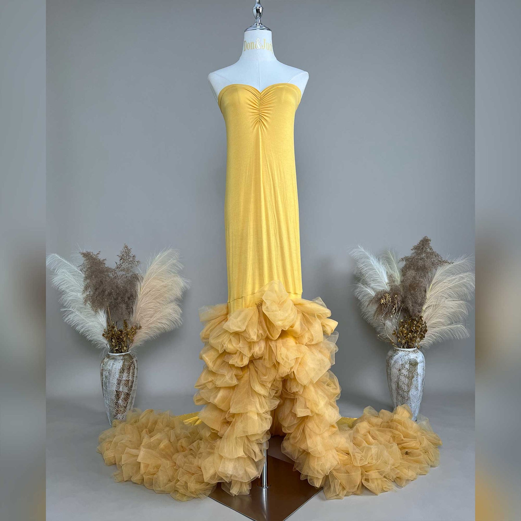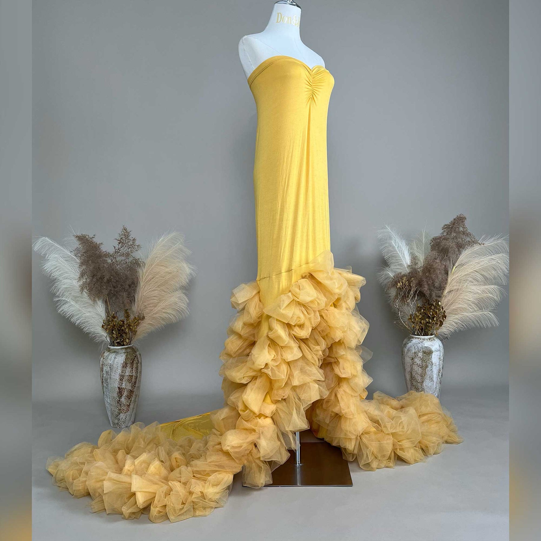 Product name: Yellow Strapless Gown – Maternity or Non-maternity Dresses for Photography Props Baby Shower Photo Props